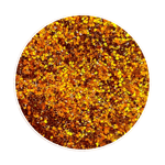Iridescent orange with a slight green/gold reflects (26mm pan/2.5-3 grams)